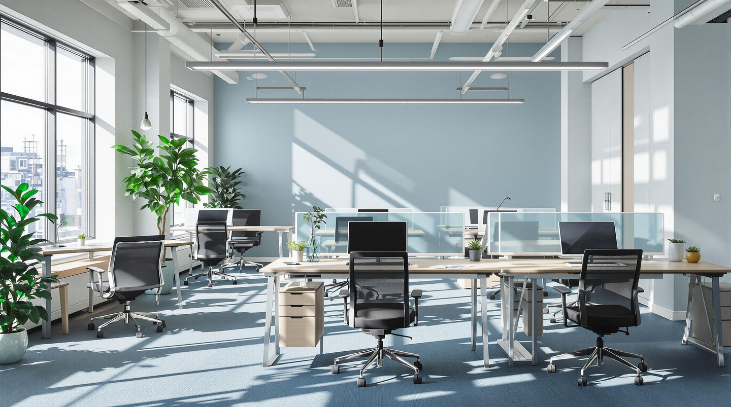 Created a workspace for a marketing agency reflecting their bold brand identity. The design integrates custom wall graphics, branded accent colors, and versatile workstations that balance creativity with professionalism.