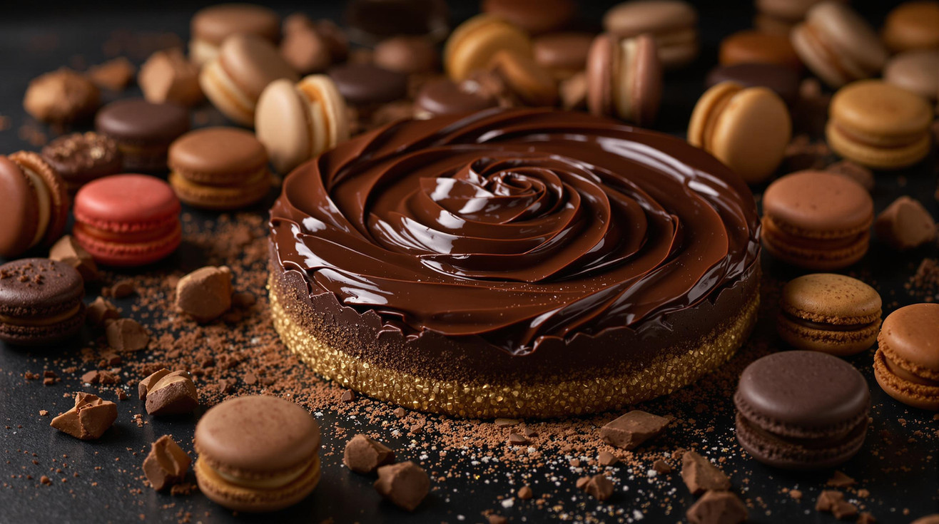 An advertising campaign for a luxury dessert company. The focus was on decadent desserts, styled with dramatic lighting and rich textures to enhance their indulgent appeal and create a sense of sophistication.